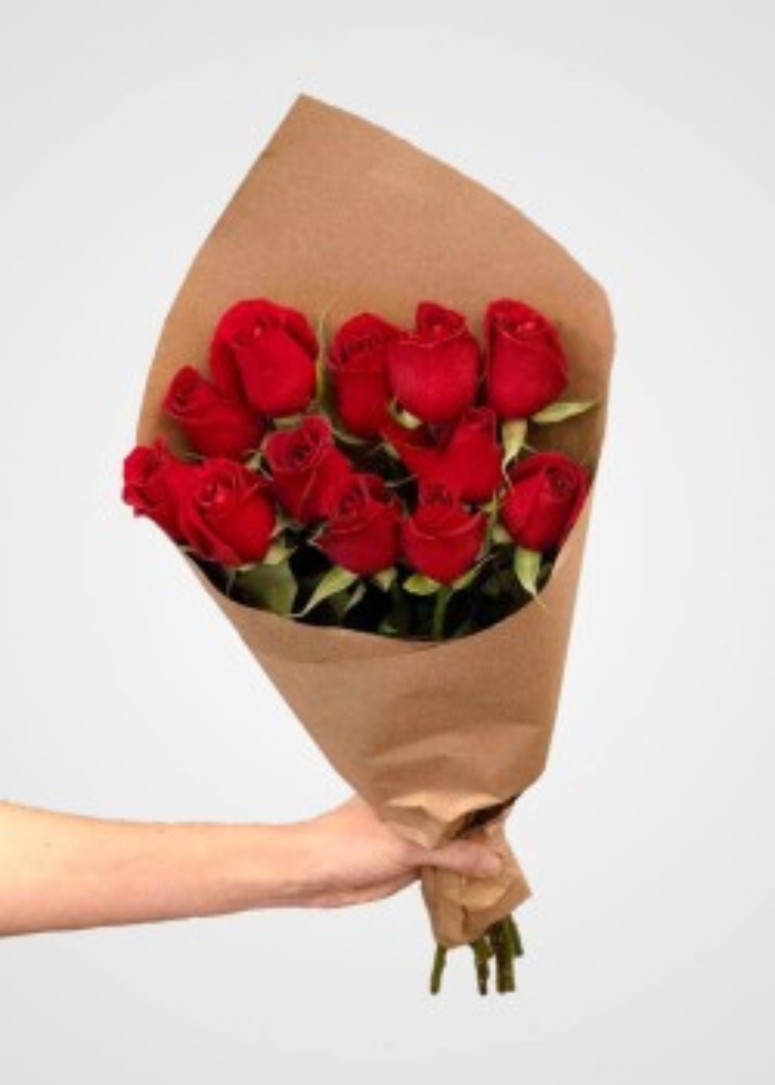 Hermoso arreglo de 12 rosas con follaje envueltas color de papel puede cambiar. Nuestras Flores son calidad Premium garantizada; nuestro compromiso contigo es entregar tu arreglo con flores frescas y en el horario de tu elección.