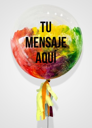 Burbuja con Pintura, 24 Pulg. El globo incluye una frase personalizada en vinil. Tiempo promedio de flotación del globo 2-3 días, bajo los condiciones correctas. (Manténgase en un lugar seco, evite cambios de clima, fricción y cercanía con superficies y objetos puntiagudos, filosos o rasposos.) Incluye tarjeta -No golpear la burbuja ya que eso le resta tiempo de helio. -Nunca sueltes globos hacia la atmosfera. -Nunca inhales gas helio. -Cuando termines de disfrutar los globos, corta la parte final y desecha correctamente. -Mantén a los niños seguros al momento de jugar con globos, desecha globos desinflados o rotos de forma inmediatamente -colores de la guirnalda de papel y tono de pintura y color del vinil sujeto a disponibilidad